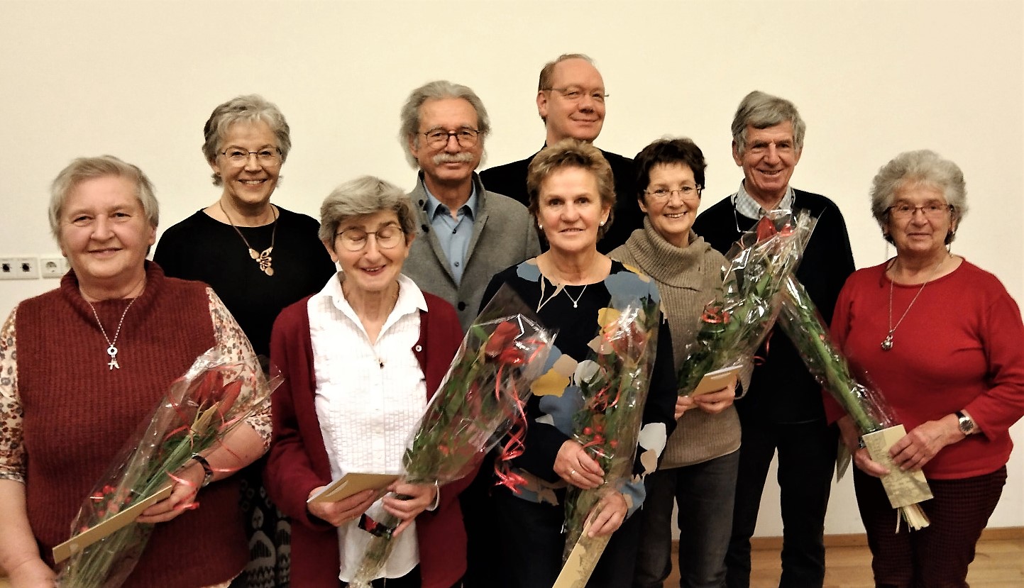 Neben dem Gedenken an das verstorbene Mitglied Dr. Walter Gächter und dem Rückblick auf die verschiedensten Einsätze in der Messgestaltung, haben auch die Ehrungen verdienter Mitglieder einen hohen Stellenwert. So erhielten 10 Sänger:innen für ihren fleißigen Besuch der Termine eine kleine Aufmerksamkeit.